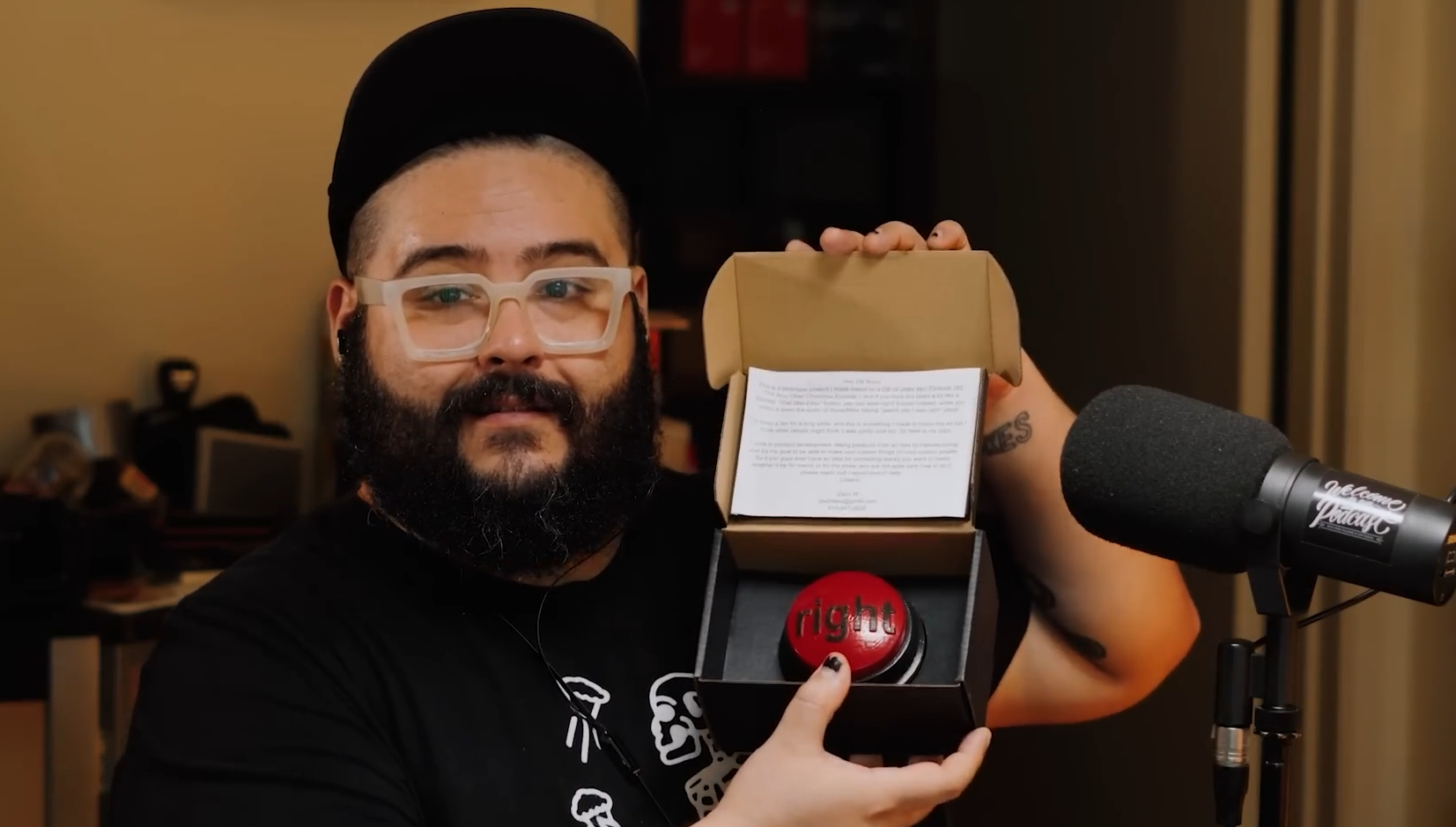 I delivered the button to one of the hosts at a local comedy show they were at, and it was unveiled on the podcast shortly after! It was a really cool experience to deliver it and I still hear them use it to this day!