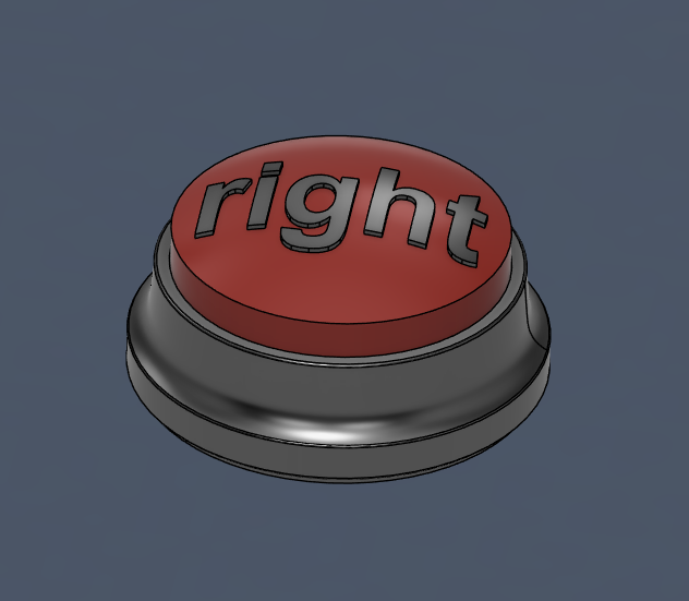 You see where I’m going with this. Design a mock button that plays take clips from the podcast of the hosts saying “I was right!”. The first step was to buy an actual Staples button and do a teardown to see how they constructed it, which as expected was quite a simple construction, and would be easy to replicate for 3D printing. The electronics in the Staples button was a custom PCB that I couldn’t interact with, so I had to make my own which was easy enough the do. Parts included an off-the-shelf microcontroller with internal memory to store the sound clips, circuitry to drive the speaker, a port for a rechargeable battery, and a button to cycle through clips. Once I had the electronics working I designed the subframe to hold the electronics as well as the button in place, then the outer housing complete with locating features to maintain a clean button slide. The button top itself is then kept rotationally constrained by the housing, and held against the top of the frame by a spring chosen to give it a satisfying button press. Because the parts were 3D printed I wanted to try vapor polishing to clean up the print lines and make the final product looks like a real manufactured part. The process went very well and you can see the results below, all that was left was a quick paint job and it was ready to deliver!